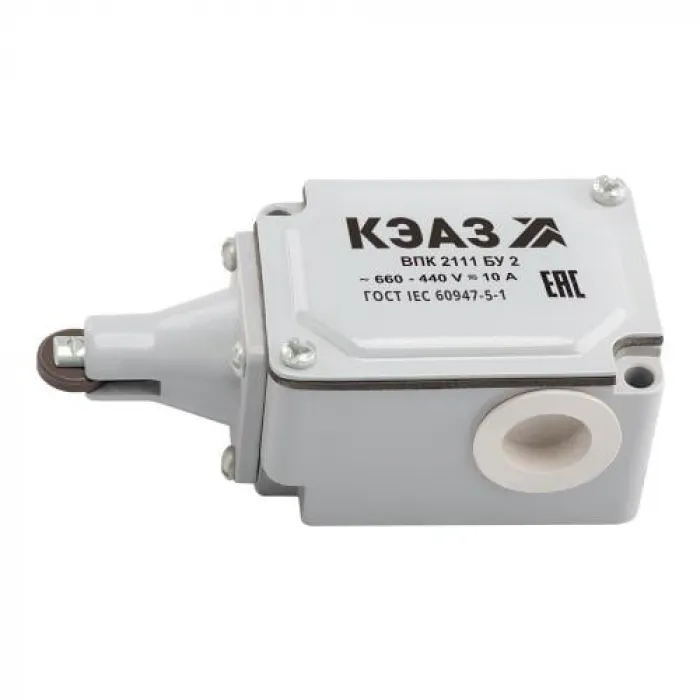 Выкл. конц. ВПК 2111Б У2-КЭАЗ - это выключатель концевой, предназначенный для использования в электрических цепях с напряжением до 250 В переменного тока. Он обеспечивает надежное отключение электрической цепи в случае перегрузки или короткого замыкания, защищая оборудование от повреждений. Продукт имеет компактный размер и прост в установке, что делает его идеальным выбором для применения в различных электрических системах.