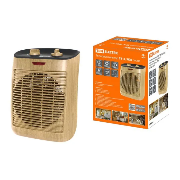 Тепловентилятор ТВ-4, "ЭКО", 2000 Вт, регул. мощн. (1200/2000 Вт), термостат, сосна, TDM, Нижний Новгород
