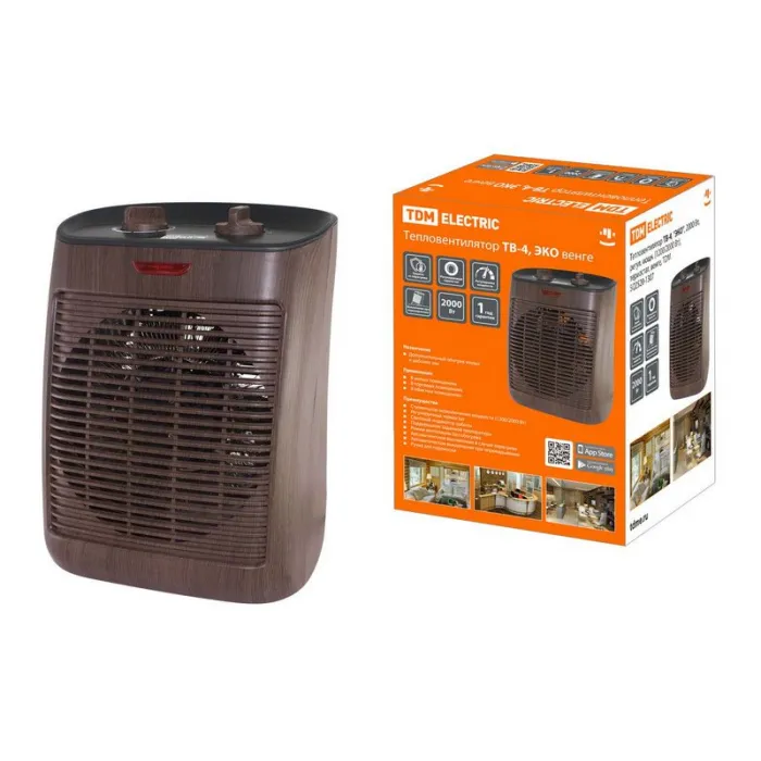 Тепловентилятор ТВ-4, "ЭКО", 2000 Вт, регул. мощн. (1200/2000 Вт), термостат, венге, TDM, Нижний Новгород
