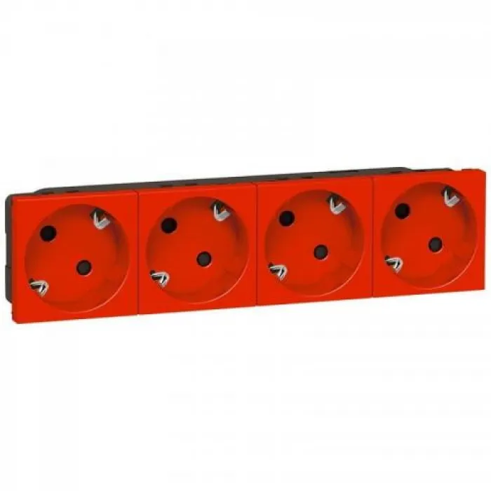 Розетка четырехместная Legrand MOSAIC, скрытый монтаж, с заземлением, со шторками, красный, Нижний Новгород