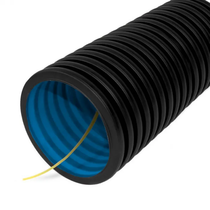 Двустенная труба ПНД гибкая для открытой прокладки д.90мм, SN8, ПВ-0, УФ, с протяжкой, в бухте 50м, цвет черный Внешн. сторона ребристая, внутр. - ровная