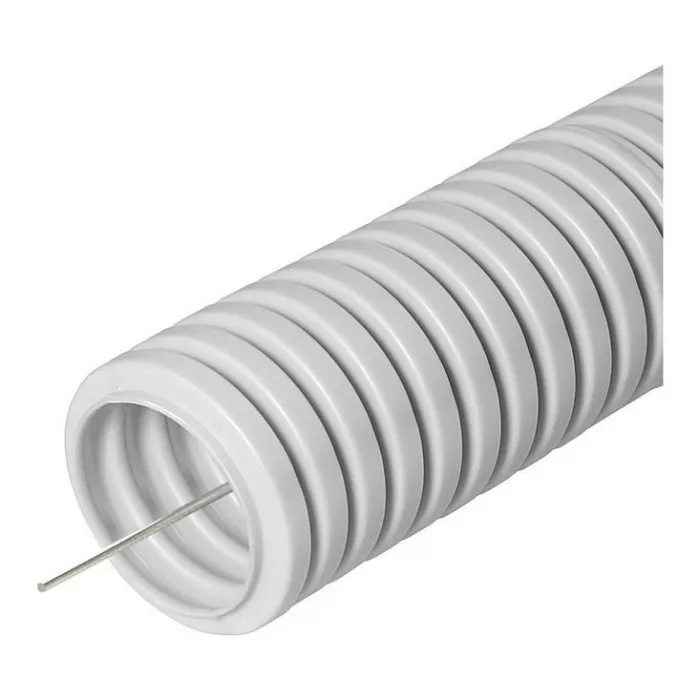Труба ПЛЛ гибкая гофр. не содержит галогенов д.20мм, ПВ-0, с протяжкой,100м, цвет белый Назначение: прокладка электрических, телефонных, компьютерных, телевизионных сетей, выполненных изолированными проводами, шнурами или кабелями.прокладка совместно с