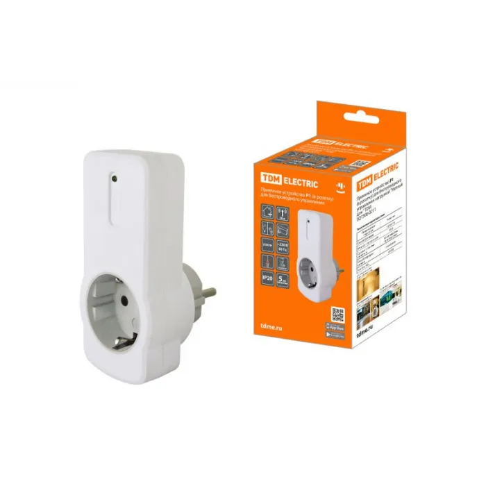 Приемное устройство Р1 (в розетку) для беспроводного управления нагрузкой Уютный дом TDM - это надежное и удобное устройство, которое позволяет беспроводно управлять электрическими нагрузками в вашем доме. Просто подключите устройство в розетку, синхронизируйте его с вашим пультом управления Уютный дом TDM и наслаждайтесь возможностью управлять освещением, бытовой техникой и другими устройствами из любой точки вашего дома. Благодаря этому устройству вы сможете создать комфортную и уютную обстановку в своем доме, а также повысить уровень безопасности, включая функцию таймера и дистанционного управления.