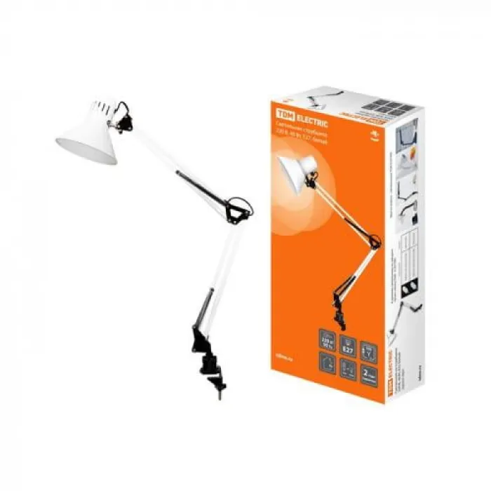 В нашем магазине Главэлектрика в Нижнем Новгороде, вы можете приобрести с доставкой по Нижнему Новгороду товар Настольный светильник TDM 220В 40Вт, E27 белый SQ0337-0027 струбцина.