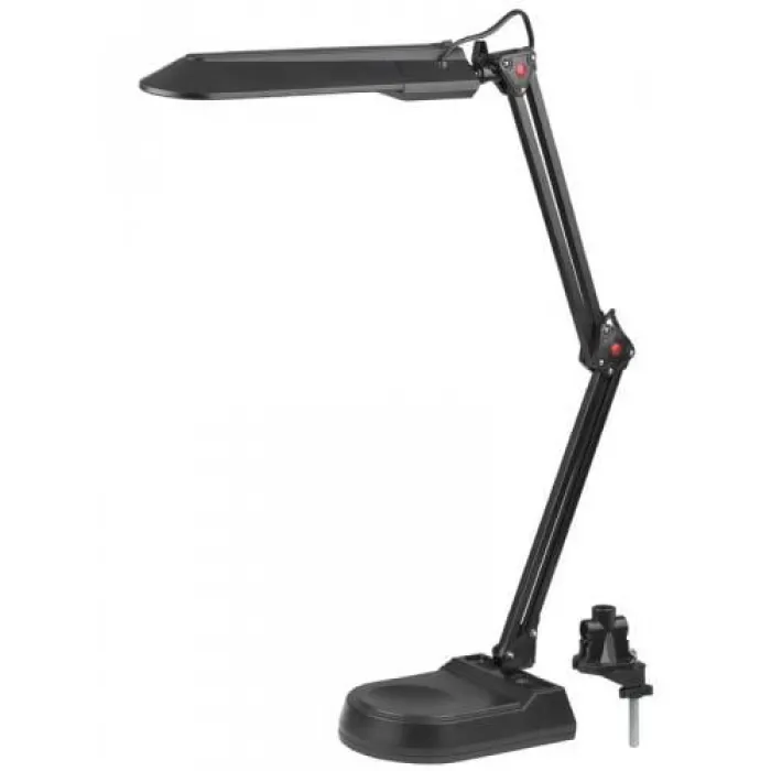 Настольный светильник, черный ЭРА NL-202-G23-11W-BK C0041459 - оптимальный вариант осветительного прибора для дома и офиса. Стойка выполнена из прочного металла, легко поддается складыванию для удобства хранения и транспортировки изделия, а также регулировки высоты плафона при выполнении работ за столом. Устройство имеет возможность разнообразной установки по желанию пользователя - на струбцину или на основание (оба элемента поставляются в комплекте).