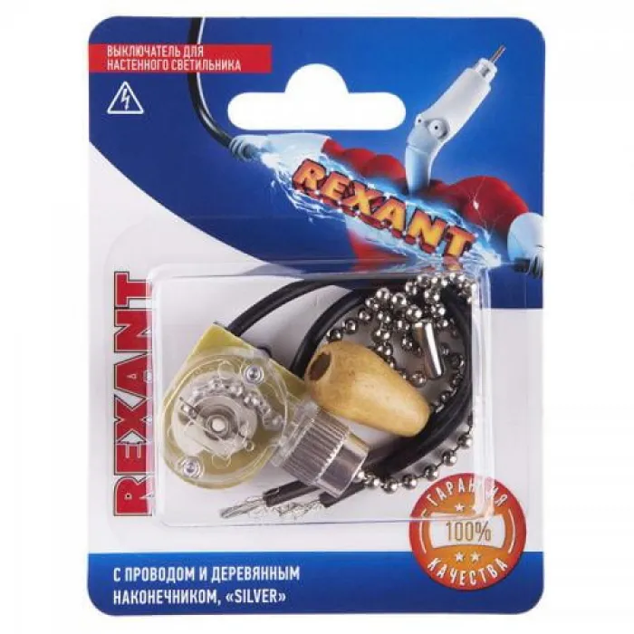REXANT Выкл. д/настен. светильника c проводом и деревянным наконечником Silver 06-0242-A, Нижний Новгород