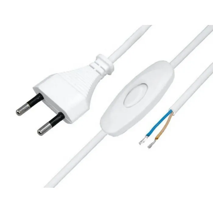 Шнур сетевой с выкл. 1,8 м с плоск. вилкой без з/к кабель 2х0.5 мм², 2.5 А белый, REXANT 11-1115, Нижний Новгород