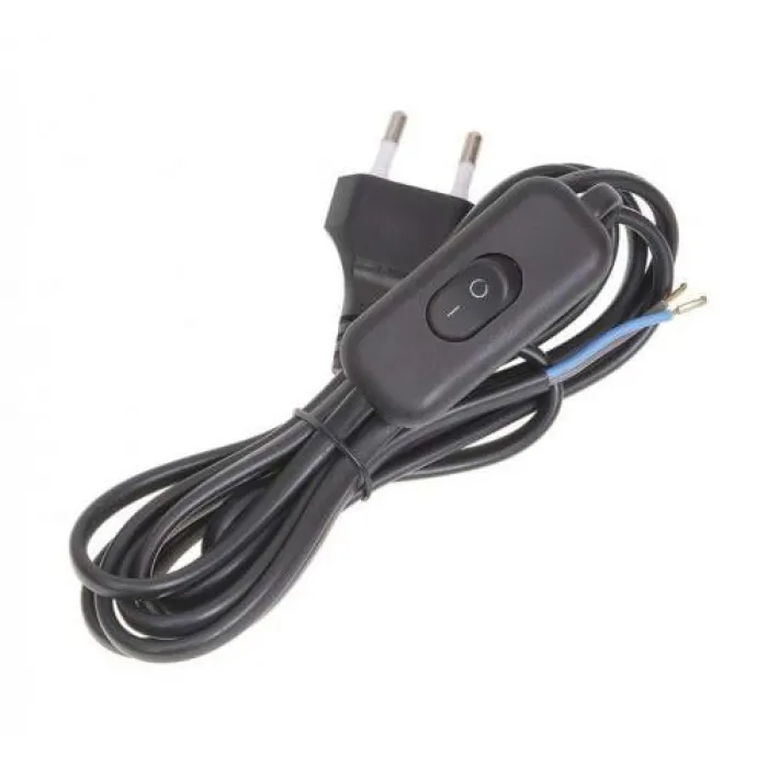 Шнур сетевой с выкл. 2 м с плоск. вилкой без з/к кабель 2х0,75мм2 черный УШ-1КВ IEK, Нижний Новгород