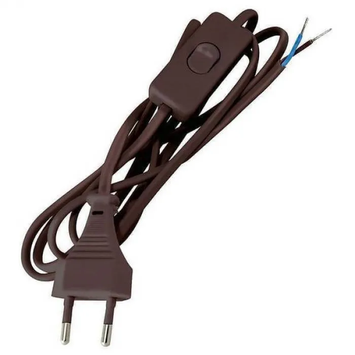 Шнур сетевой с выкл. 2 м с плоск. вилкой без з/к ШВВП 2х0,75мм2 коричневый ШУ01В TDM "ЭКО", Нижний Новгород
