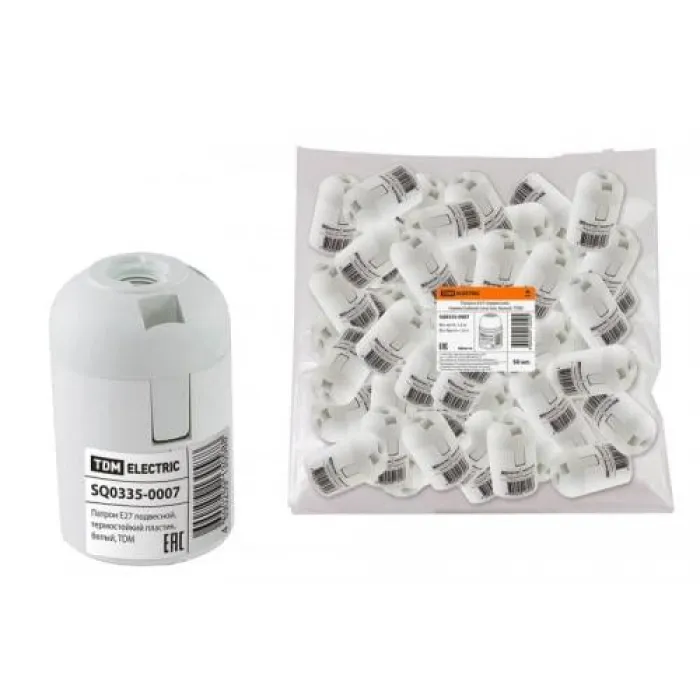 Патрон E27 подвесной, термостойкий пластик, черный, TDM - это качественный и надежный патрон для ламп с цоколем E27, предназначенный для подвесного монтажа. Изготовлен из термостойкого пластика, что обеспечивает безопасность и долгий срок службы изделия. Черный цвет патрона придаст стильный и современный вид любому интерьеру. Продукт отличается высоким качеством исполнения и удобством в использовании, что делает его идеальным выбором для освещения в доме, офисе или других помещениях.