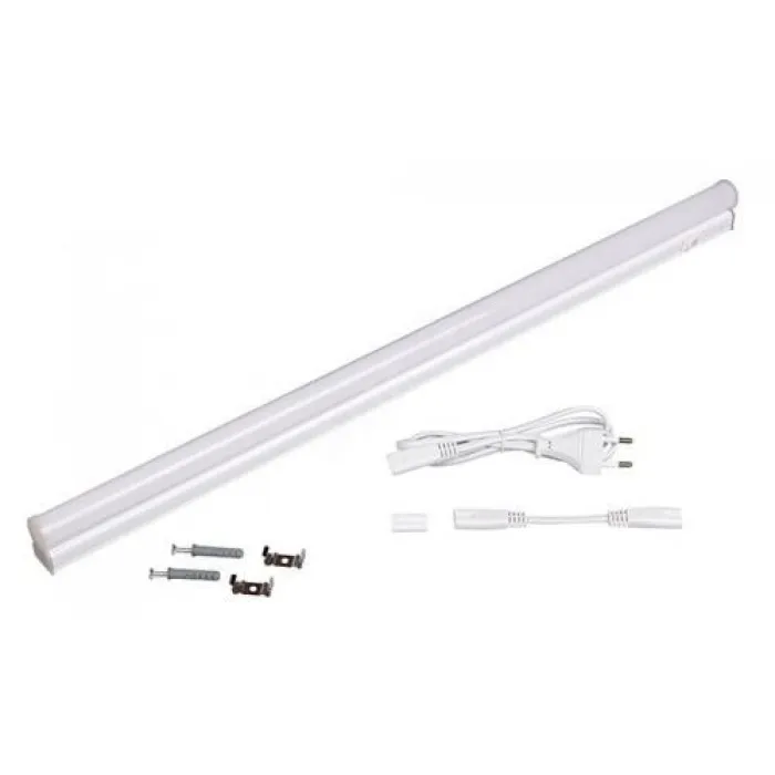 Установка. Монтируется внутри помещений внутри помещений на сухие ровные поверхности с помощью специальных креплений (входят в комплект). Светильник предназначен для местного освещения рабочих поверхностей в жилых и общественных помещениях. Возможно подключение в линию. Конструкция. Легкий корпус, матовый рассеиватель из поликарбоната. Выключатель на корпусе. В комплект поставки входит сетевой шнур с вилкой, крепежные клипсы, втулка для подключения светильников в линию, коннектор, заглушки. Встроенный драйвер входит в комплект поставки. Индекс цветопередачи: Ra ≥ 75. Частота: 50–60 Гц. Коэффициент пульсации: ≤ 5%.Коэффициент мощности: cos ≥ 0,5. Кол-во светильников, подключаемых в линию, шт. : ≤ 10. Длина коннектора, м: 0,135. Длина сетевого шнура, м: 1,04. Светильники, предназначенные для установки непосредственно на поверхности из нормально воспламеняемых материалов. Климатическое исполнение: УХЛ4.