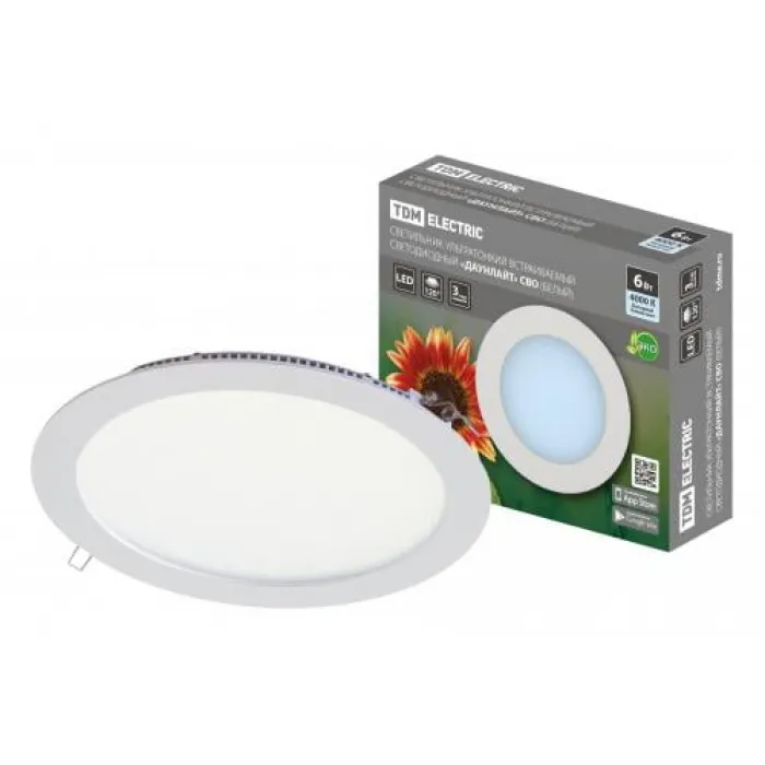 В нашем магазине Главэлектрика в Нижнем Новгороде, вы можете приобрести с доставкой по Нижнему Новгороду товар Светильник ультратонкий встраиваемый светодиодный "Даунлайт" СВО (белый) 6 Вт 4000К TDM.