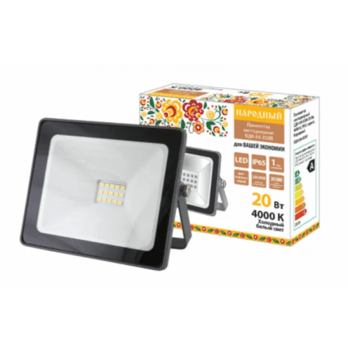 Прожектор светодиодный TDM СДО-04-020Н 20Вт 4000К 1600Лм IP65 110х90х25мм серый Народный - это энергоэффективный и надежный светодиодный прожектор, который идеально подходит для освещения улиц, дворов, парков, складов и других объектов. Светильник имеет мощность 20 Вт, цветовую температуру 4000K и яркость 1600 Лм, обеспечивая яркое и равномерное освещение. Прожектор имеет степень защиты IP65, что обеспечивает защиту от пыли и влаги, а его компактные размеры 110х90х25мм позволяют установить его практически в любом месте. Дизайн в сером цвете делает его универсальным и легко вписывающимся в любой экстерьер. Прожектор светодиодный TDM СДО-04-020Н 20Вт 4000К 1600Лм IP65 110х90х25мм серый Народный - отличный выбор для тех, кто ценит качество, надежность и экономию энергии.