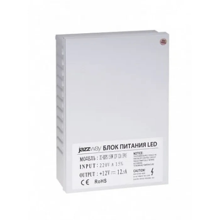 Блок питания Jazzway 12V12,5A=150W IP45, 1001221 - надежное и эффективное решение для вашего освещения, которое обеспечит долговечную и безопасную работу светодиодных лент.