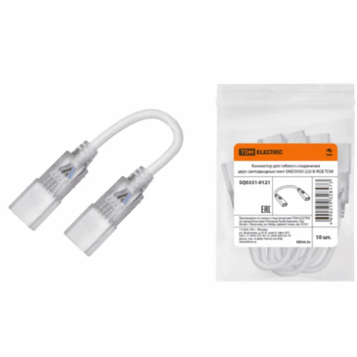 В нашем магазине Главэлектрика в Нижнем Новгороде, вы можете приобрести с доставкой по Нижнему Новгороду товар Коннектор для гибкого соединения двух светодиодных лент SMD5050-220 В-RGB TDM.