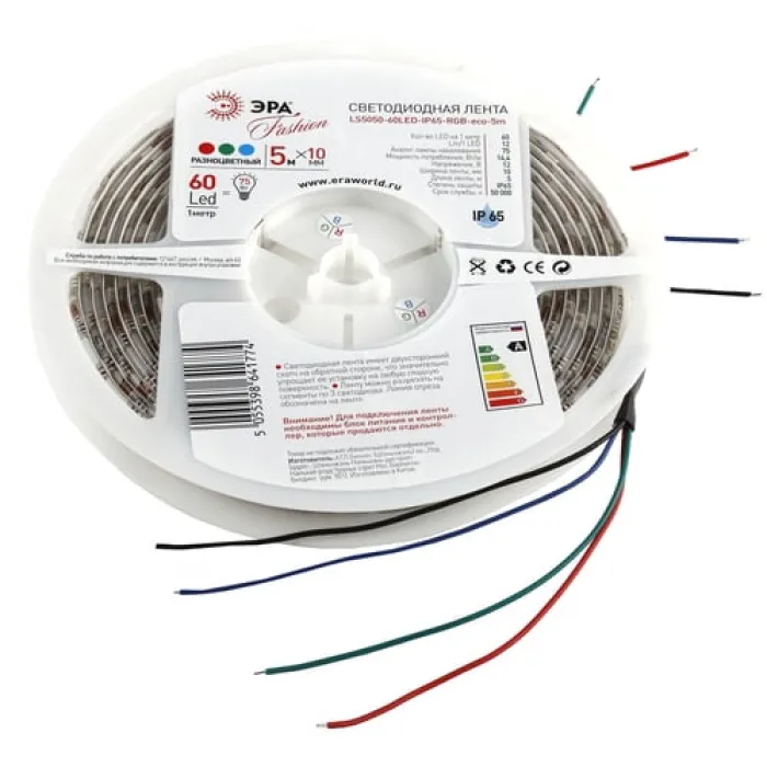 Светодиодная лента Эра IP65 12V 14,4Вт/м мультиколор LS5050-60LED-RGB-eco (5м), Б0002347 – это качественный и функциональный источник света, который поможет воплотить в жизнь самые смелые дизайнерские идеи. Эта светодиодная лента обладает всеми необходимыми характеристиками, чтобы быть превосходным решением для освещения любого помещения или создания эффектных световых акцентов.