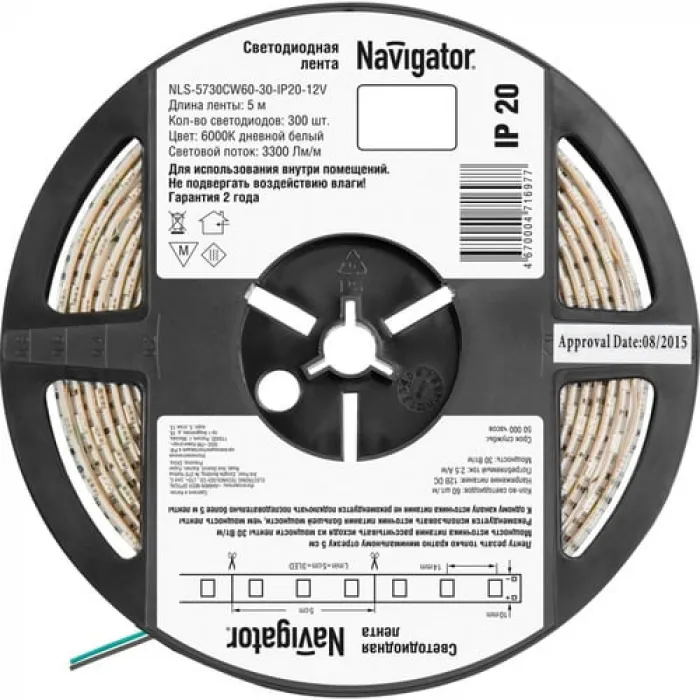 В нашем магазине Главэлектрика в Нижнем Новгороде, вы можете приобрести с доставкой по Нижнему Новгороду товар Светодиодная лента Navigator IP20 12V 30Вт/м 6000К NLS-5730CW60-30 R5 (5м), 71697.