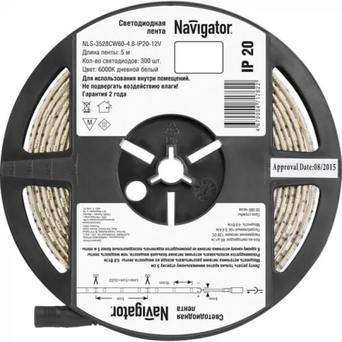 В нашем магазине Главэлектрика в Нижнем Новгороде, вы можете приобрести с доставкой по Нижнему Новгороду товар Светодиодная лента Navigator IP20 12V 4.8Вт/м 6000К NLS-3528СW60 R5 СД (5м), 71762.