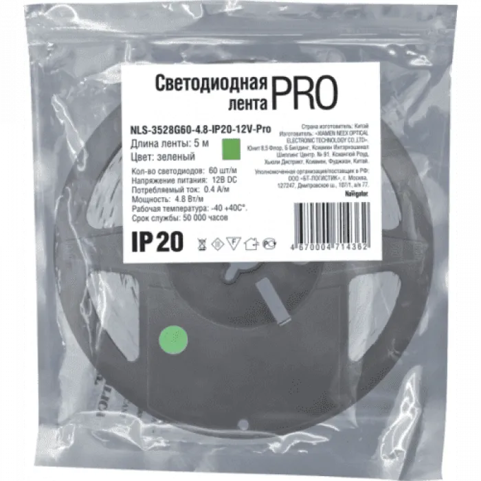 В нашем магазине Главэлектрика в Нижнем Новгороде, вы можете приобрести с доставкой по Нижнему Новгороду товар Светодиодная лента Navigator IP20 12V 4.8Вт/м зелёный NLS-3528G60 серия PRO СД (5м), 71436.