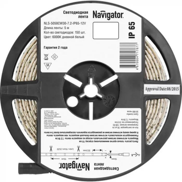Светодиодная лента Navigator IP65 12V 7.2Вт/м 6000К NLS-5050СW30 R5 СД (5м), 71767, Нижний Новгород