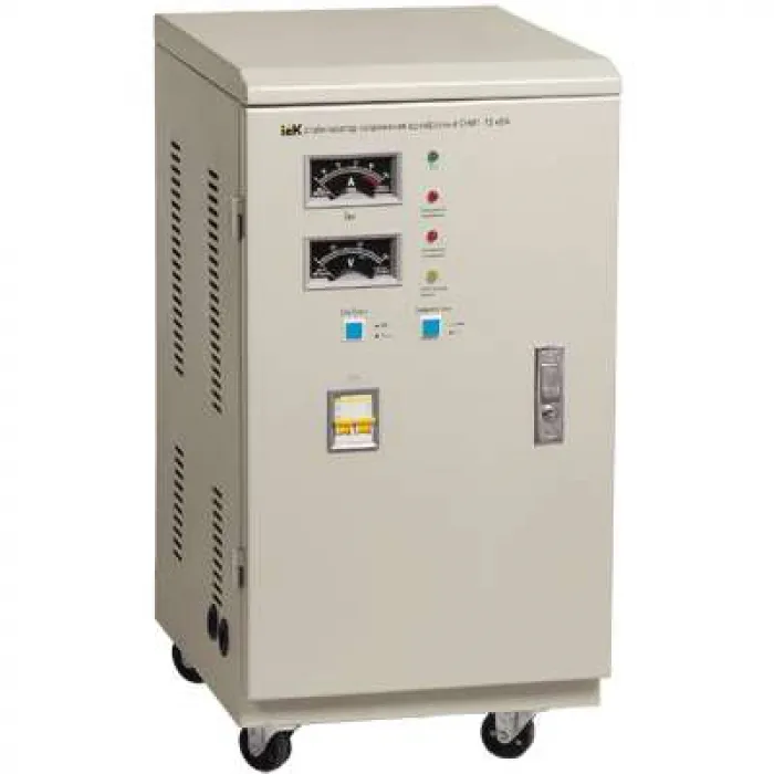 Стабилизаторы напряжения электромеханического типа торговой марки IEK предназначены для поддержания стабильного однофазного/трехфазного напряжения питания нагрузок бытового и промышленного назначения 220 B/3x220 В, 50 Гц при отклонениях сетевого напряжения в широких пределах по значению и длительности. Применяются для стабилизации напряжения при работе с высокочувствительной техникой на промышленных объектах, в медицинских организациях, телекоммуникационных компаниях, в малоэтажном жилищном строительстве, в жилищно-коммунальном хозяйстве. Позволяют продлить срок эксплуатации систем освещения, компьютерного оборудования и др. Соответствуют стандартам ГОСТ Р 52161.1, ГОСТ Р 30805.14.1, ГОСТ Р 51317.3.2, ГОСТ Р 51318.14.1, ГОСТ Р 51318.14.2. Золотая медаль 18-й международной выставки «Электро-2009» в номинации «Лучшее электрооборудование» получена за высокие показатели качества, надежности, эксплуатационные характеристики и эффективные конструкторские решения. Стабилизаторы напряжения электромеханического типа с