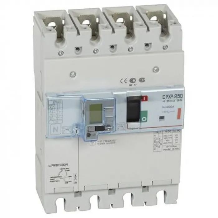 LEGRAND 420258 Автоматический выключатель с термомагнитным расцепителем и дифференциальной защитой, серия DPX3, 200A, 36kA, 4-полюсный Автоматические выключатели в литом корпусе DPX³ 250 на токи от 40 до 250 АС термомагнитным расцепителем