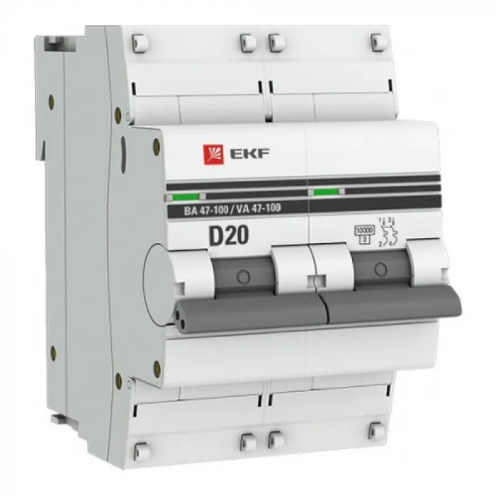 Автоматический выключатель EKF PROxima 2P 20А (D) 10kA, mcb47100-2-20D-pro имеет высокую степень защиты - 10kA, что обеспечивает эффективную защиту от короткого замыкания и предотвращает возникновение пожара или повреждения оборудования.