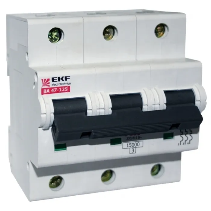 Автоматический выключатель EKF PROxima 3P 125А (C) 15кА, mcb47125-3-125C является надежным и безопасным выбором для защиты электрических сетей в различных промышленных и бытовых условиях.