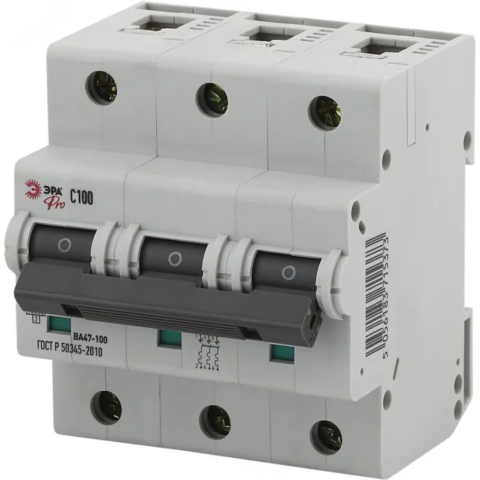Выключатель ЭРА PRO NO-902-287 ВА47-100 оснащен автоматическим механизмом срабатывания, который реагирует на перегрузки и короткие замыкания в сети, автоматически отключая электроэнергию и предотвращая возможные повреждения оборудования и возгорания.