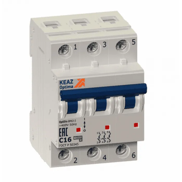 Автоматический выключатель КЭАЗ OptiDin BM63 3P 50А (D) 6кА, 260816 обладает функцией автоматического отключения при возникновении перегрузки или короткого замыкания, что позволяет предотвратить повреждение электрооборудования и предотвратить возможные пожары.