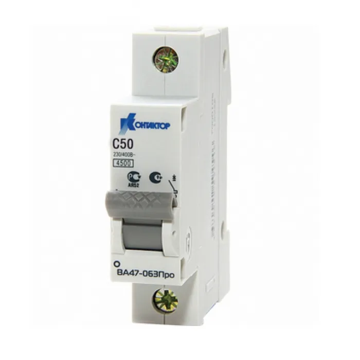 Выключатели ВА47-063Про предназначены для проведения тока в нормальном режиме и отключения тока при коротких замыканиях, перегрузках, а также для нечастых оперативных включений и отключений электрических цепей и рассчитаны для эксплуатации в электроустано