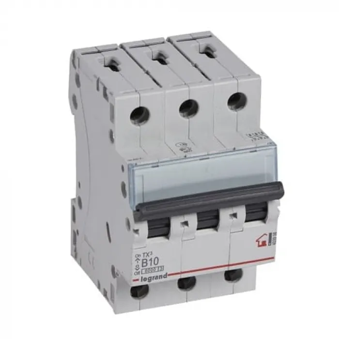Автоматический выключатель Legrand TX3 3P 10А (B) 6кА, 403998 - это электрическое устройство, предназначенное для защиты электрической системы от перегрузок и коротких замыканий.Он имеет три полюса, что позволяет использовать его в трехфазной системе. Номинальный ток составляет 10А, что означает, что выключатель может выдерживать постоянный ток до 10А без перегрузки.