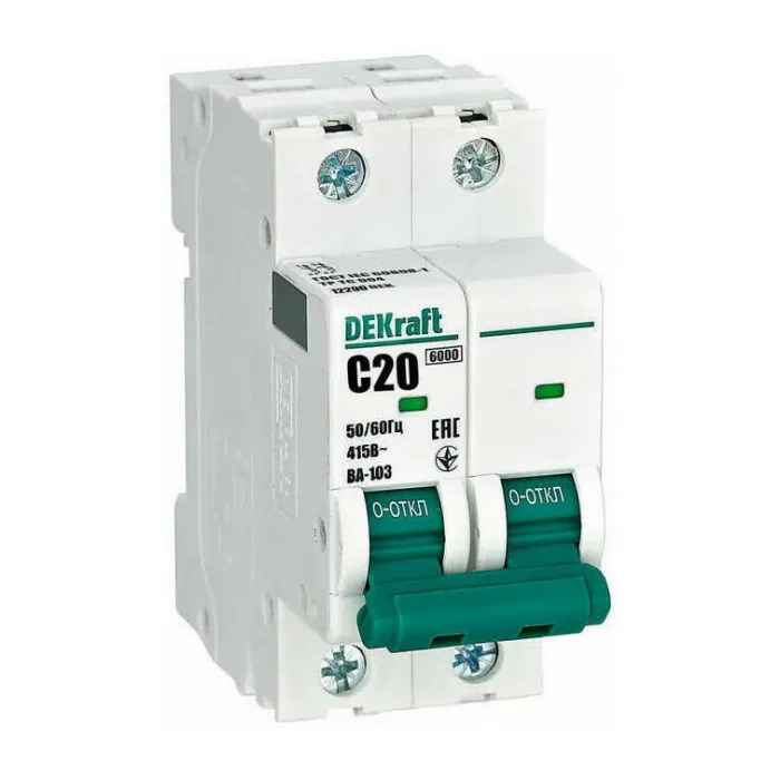 Автоматический выключатель DEKraft 2-полюсный ВА-103 C20 2Р 6кА, Нижний Новгород