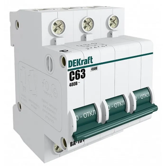 В нашем магазине Главэлектрика в Нижнем Новгороде, вы можете приобрести с доставкой по Нижнему Новгороду товар Автоматический выключатель DEKraft ВА-101 3P 10А (D) 4.5кА, 11125DEK.