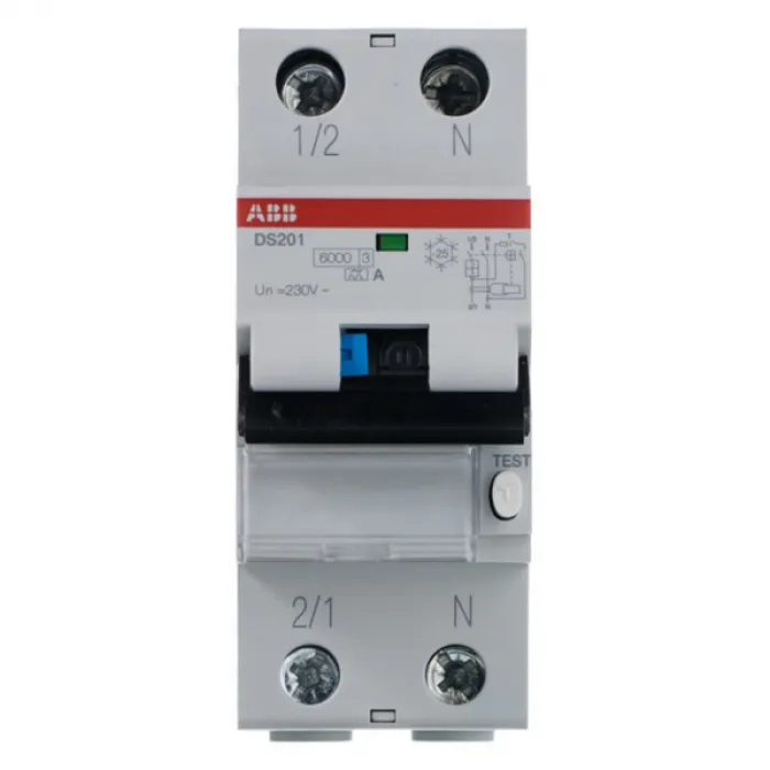 Дифференциальный автомат (АВДТ) 2-полюсный (1P+N) 2А 30мА характеристика C A DS200 ABB