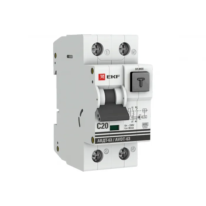 Дифавтомат EKF PROxima АВДТ-63, 20А, 30мА, характеристика C, электро-механический, тип AC, 6кА, DA63-20-30-AC, Нижний Новгород