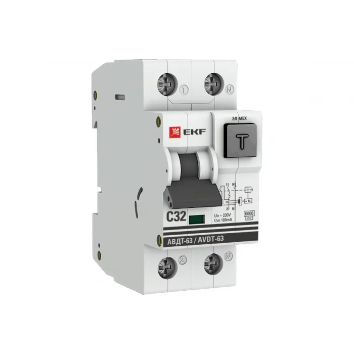 Дифавтомат EKF PROxima АВДТ-63, 32А, 100мА, характеристика C, электро-механический, тип AC, 6кА DA63-32-100em-AC, Нижний Новгород