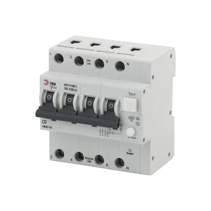 Дифавтомат Эра АВДТ 63 3Р+N С32А 30мА 6кА тип А, Б0031849, Нижний Новгород