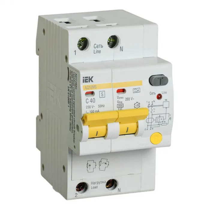 Дифавтомат IEK АД12MS 2P 40А (C), 100 мА ( A ), MAD123-2-040-C-100, Нижний Новгород