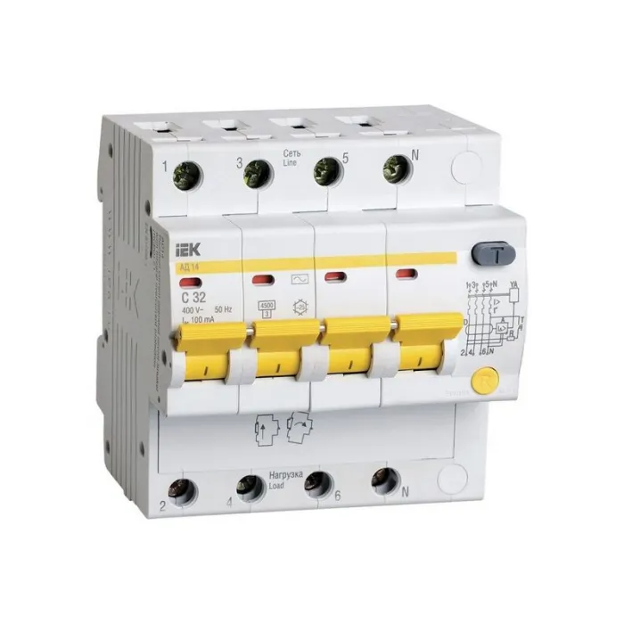 Дифавтомат IEK АД14 4P 32А (C) 4.5кА 300мА (AC), MAD10-4-032-C-300, Нижний Новгород