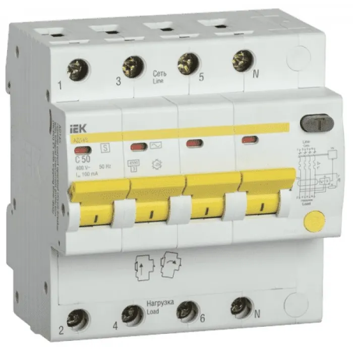 Дифавтомат IEK АД14S 4P 50А ( C ), 100 мА ( AC ), MAD13-4-050-C-100, Нижний Новгород