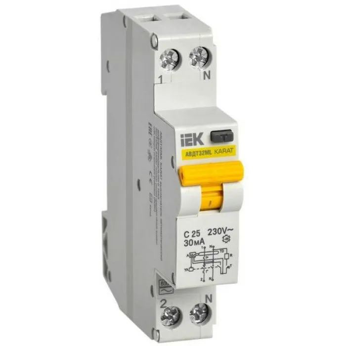 Дифавтомат IEK KARAT 2P 20А ( C ), 30 мА ( A ), MVD12-1-020-C-030 является надежным и безопасным устройством для защиты электрических цепей от перегрузок и короткого замыкания, а также от поражения электрическим током.
