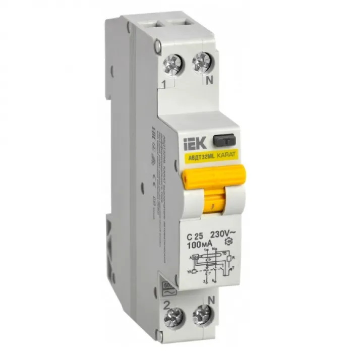 Дифавтомат IEK KARAT 2P 25А ( C ), 100 мА ( A ), MVD12-1-025-C-100, Нижний Новгород