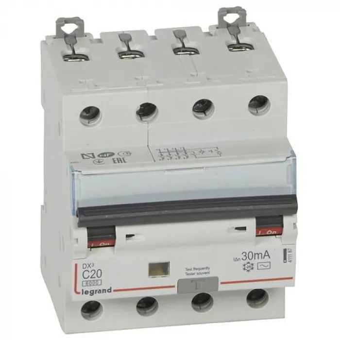 Дифавтомат Legrand DXЗ 4P 20А (C) 10кА 30мА (AC), 411187 - это надежное решение для обеспечения безопасности и эффективности вашей электрической сети, предлагаемое легендарным брендом, известным своим качеством и инновациями в области электротехники.