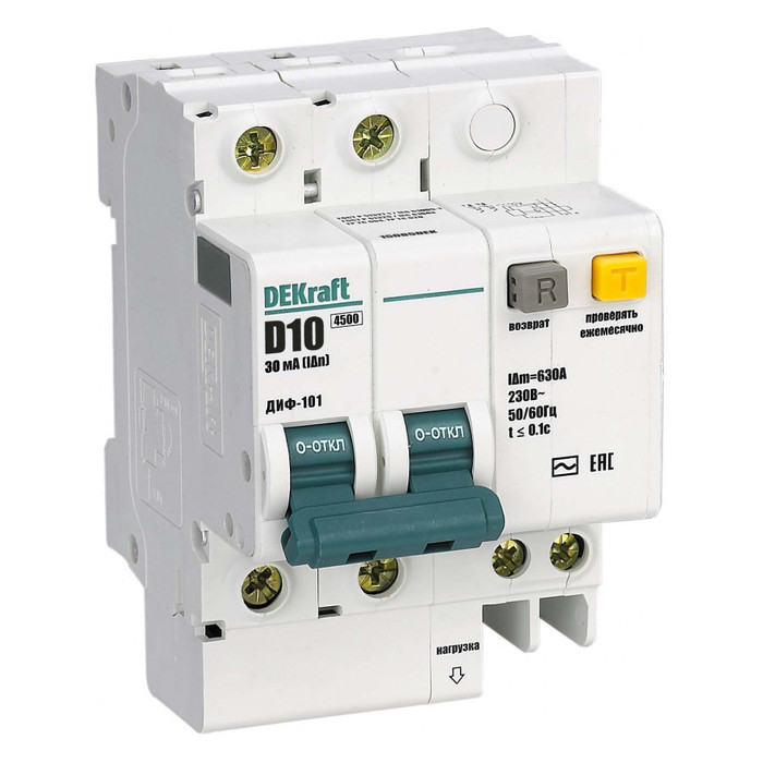Дифавтомат DEKraft ДИФ-101 2P 10А (D) 4.5 кА, 30 мА (AC), 15085DEK, Нижний Новгород