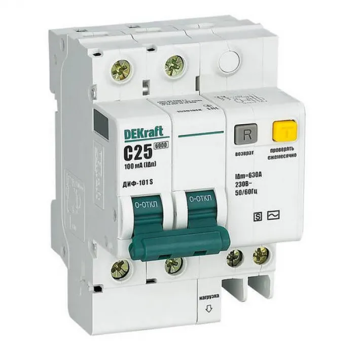 Модель DEKraft ДИФ-101 2P 25А (C) 6 кА, 100 мА (S), 15300DEK отличается высоким качеством и надежностью, что делает ее идеальным выбором для использования в домах, офисах и других объектах, где требуется надежная защита электрических сетей.