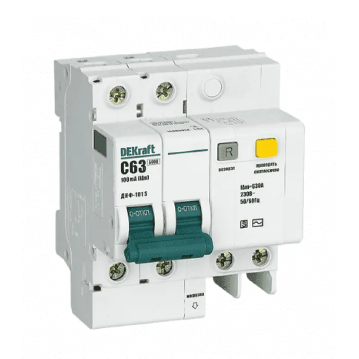 Дифавтомат DEKraft ДИФ-101 2P 63А ( C ) 6 кА, 100 мА ( AC ), 15304DEK, Нижний Новгород