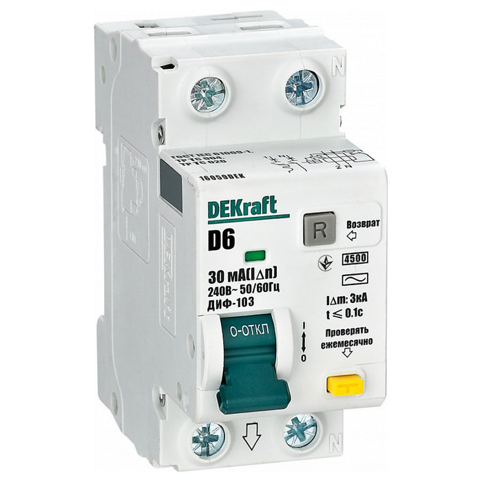 Дифавтомат DEKraft ДИФ-103 1P+N 6А (D) 4.5 кА, 30 мА (AC), 16059DEK, Нижний Новгород