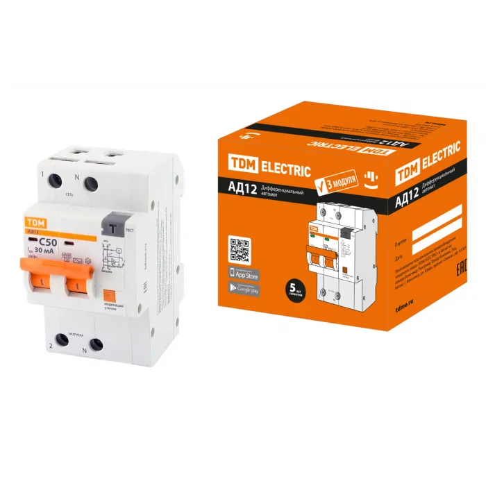 Дифавтомат TDM АД12 2P, 50А, 30мА SQ0204-0120 - это надежное и эффективное устройство, предназначенное для защиты электрических сетей от перегрузок и коротких замыканий.С его помощью вы можете обеспечить безопасность вашей электрической системы, благодаря встроенной функции автоматического отключения при обнаружении неисправностей.