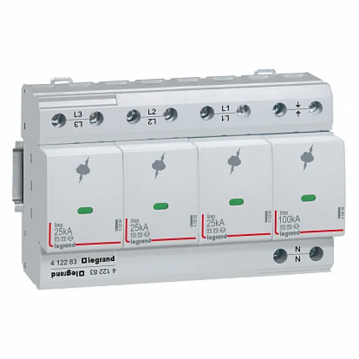 Устройство защиты от импульсных перенапряжений УЗИП T1 25kA 3P+N с сигнальным контактом предназначено для защиты электрических сетей и оборудования от повреждений, вызванных импульсными перенапряжениями.Это устройство обеспечивает защиту от высоких электрических импульсов, возникающих в результате молнии, коммутационных процессов или других внешних воздействий.